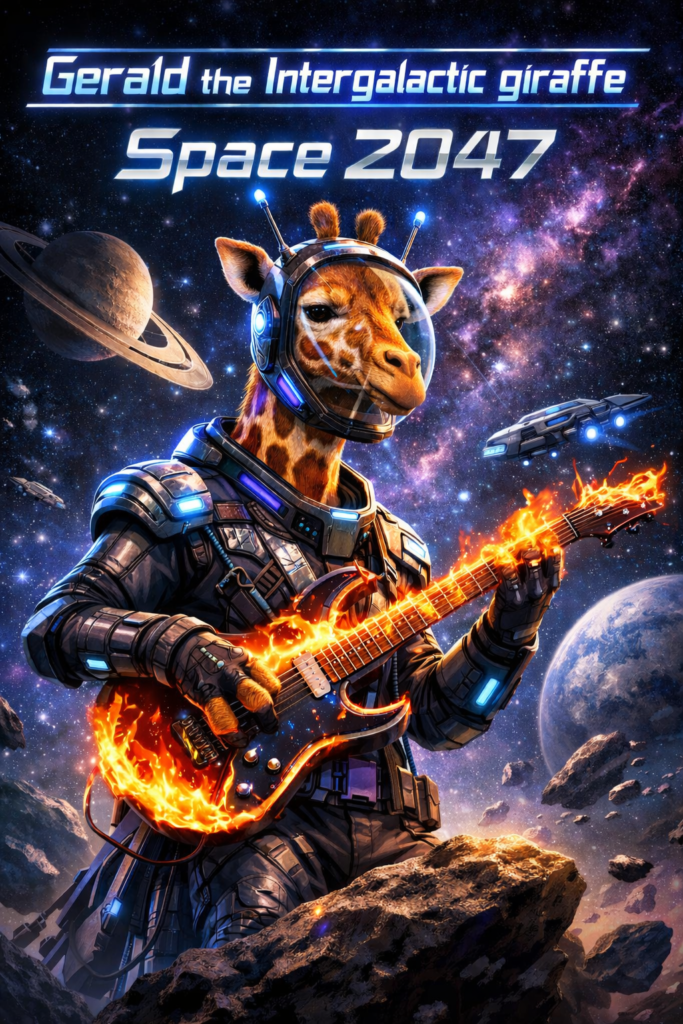 Albums Space 2047 sci-fi comedy Coming soon a new Gerald the Intergalactic giraffe album called Space 2047 April 10, 2026 admin No Comments
