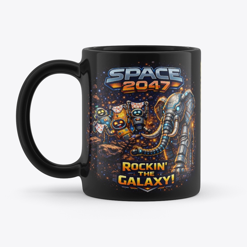 The mug featuring the Space 2047 design is now available to buy via the button below: Click here to buy the rockin the galaxy mug Post navigation Buy Space nuns on the run EP on CD Space 2047 rockin the galaxy 3 robots mug